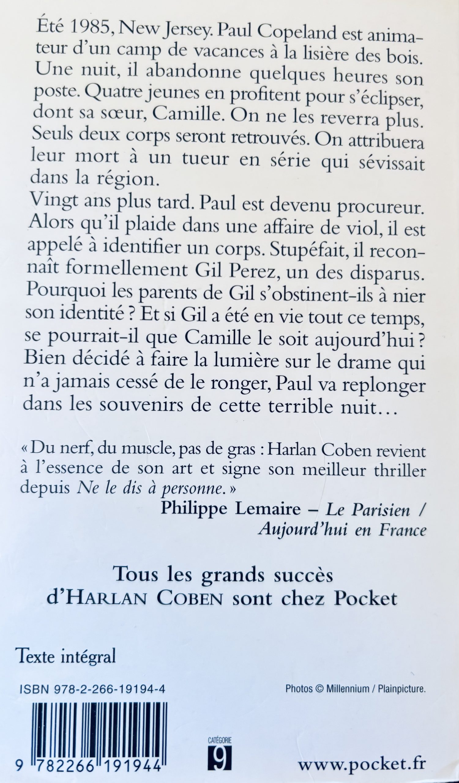Été 1985, New Jersey. Paul Copeland est animateur d’un camp de vacances à la lisière des bois. Une nuit, il abandonne quelques heures son poste. Quatre jeunes en profitent pour s’éclipser, dont sa sœur, Camille. On ne les reverra plus. Seuls deux corps seront retrouvés. On attribuera leur mort à un tueur en série qui sévissait dans la région.