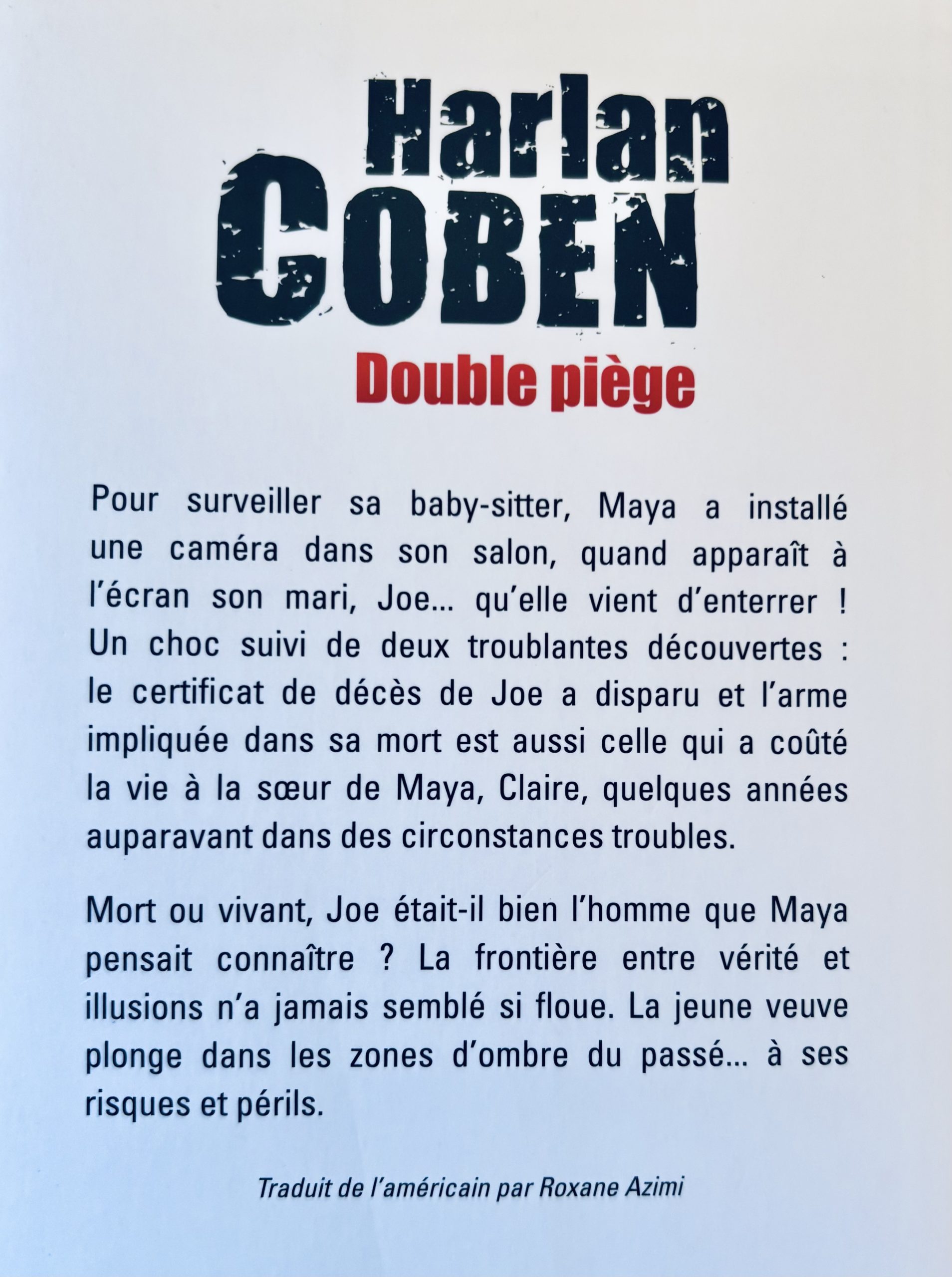 Pour surveiller sa baby-sitter, Maya a installé une caméra dans son salon. Un jour, un homme apparaît à l’écran, jouant avec sa petite Lily. Un homme que Maya connaît bien : Joe, son mari… qu’elle vient d’enterrer.