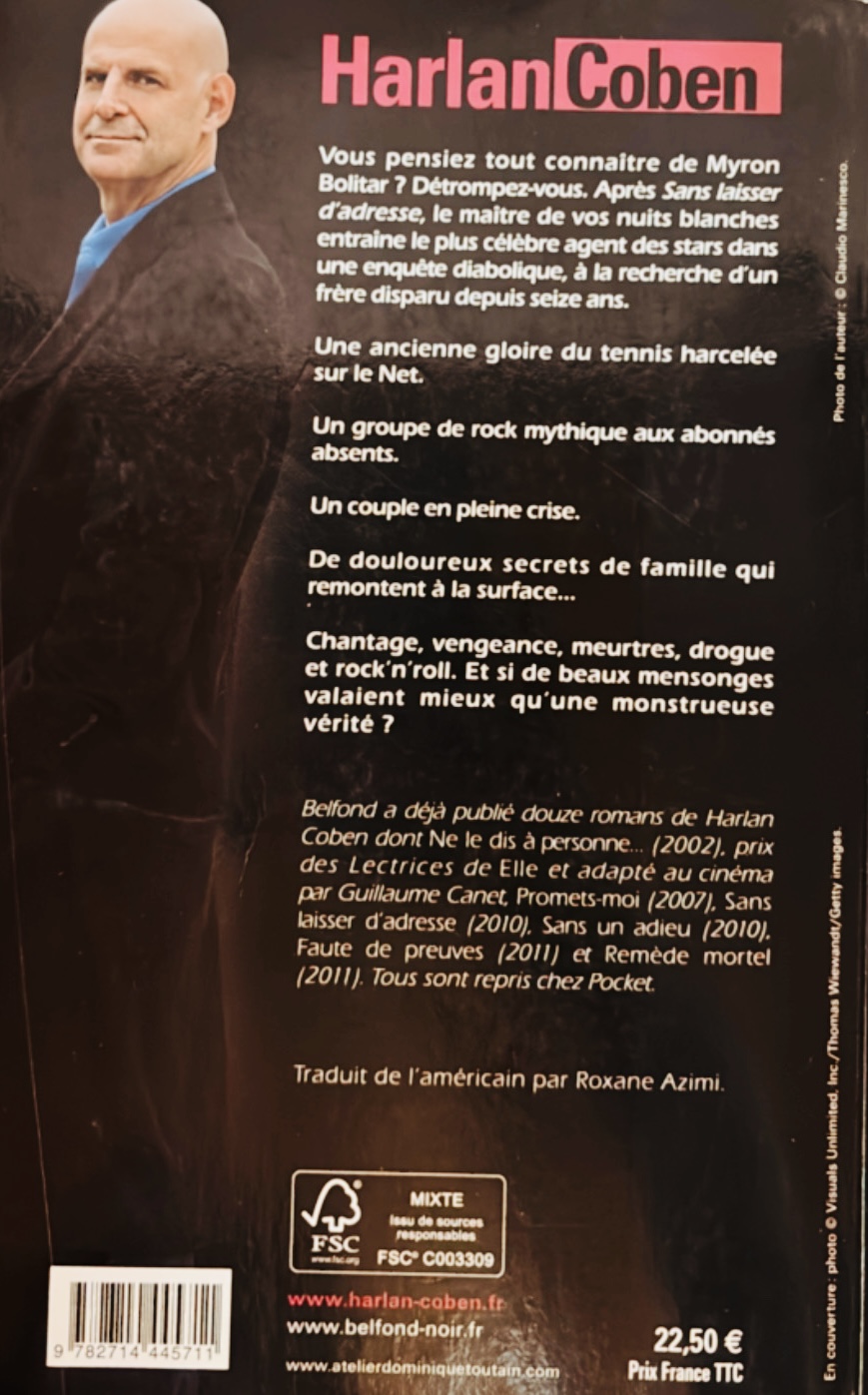 Une joueuse de tennis enceinte, qu’on fait chanter sur Facebook. Un ancien rockeur au creux de la vague, vivant reclus dans sa villa. Une enquête de routine qui vire aux révélations familiales. Remis par hasard sur la piste de son frère disparu, Myron Bolitar plonge au cœur de secrets bien gardés. Un mensonge vieux de seize ans ne demande qu’à éclater.